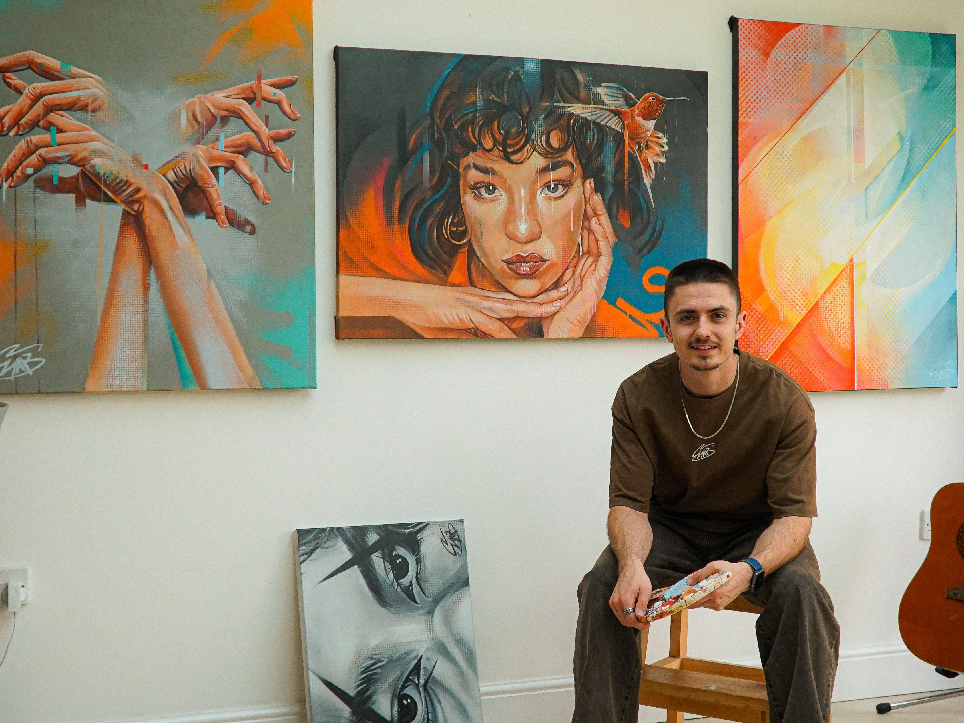 I’m Charlie Jewett, also known as Chabizzel—or just Chab. I’m a portrait artist based in Southampton, and my work blends the bold energy of street art with the emotional depth of expressionist portraiture. I primarily use spray paints and acrylics, often incorporating stencils to create a unique mix that sits somewhere between fine art and urban influence.